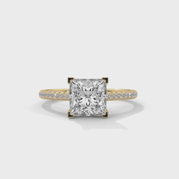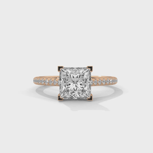 2.22 CT Princess Cut Lab-Grown Diamond Solitaire Ring with Pavé Band